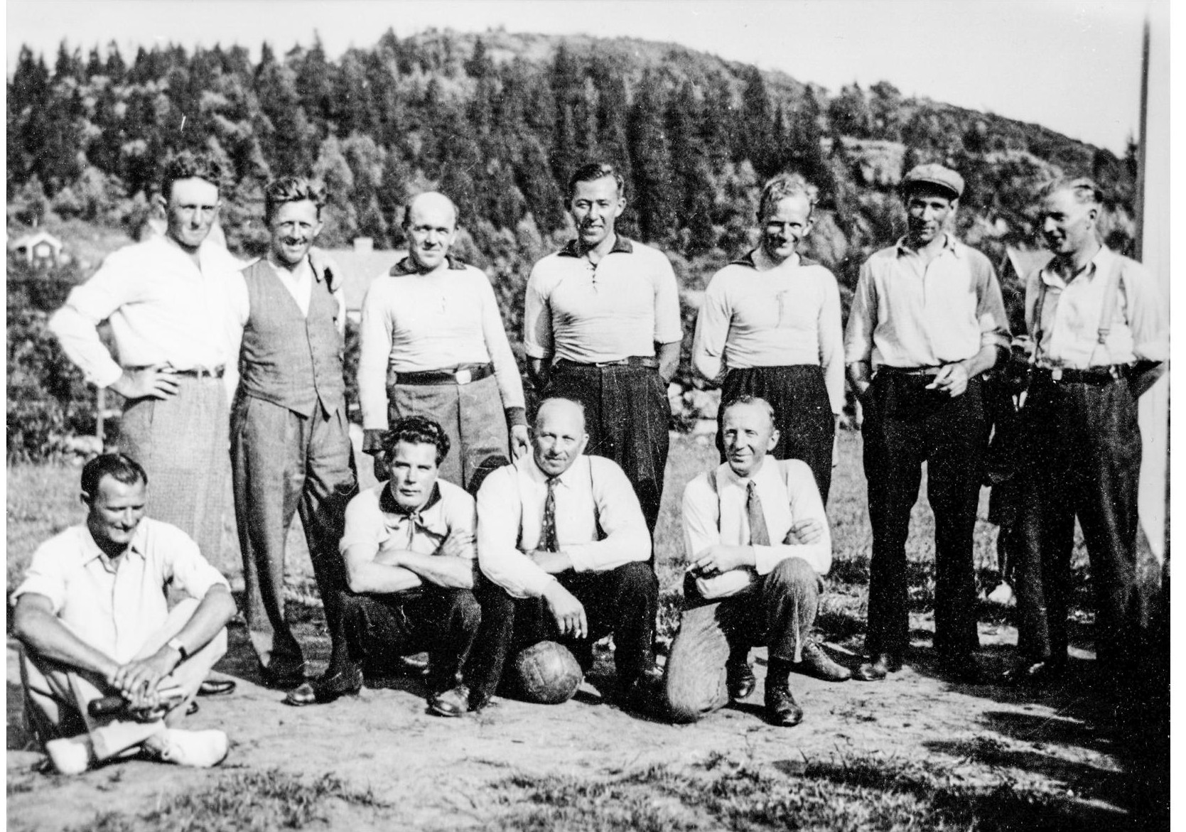 I Allan Sohlbergs fotoalbum har jag funnit bilder på två fotbollslag från år 1935. Allan berättar att herrlaget spelade en vänskapsmatch mot Munkedals damlag och förlorade med 1–5. Knut Struts gjorde Dingles enda mål och var riktigt irriterad efter matchen.