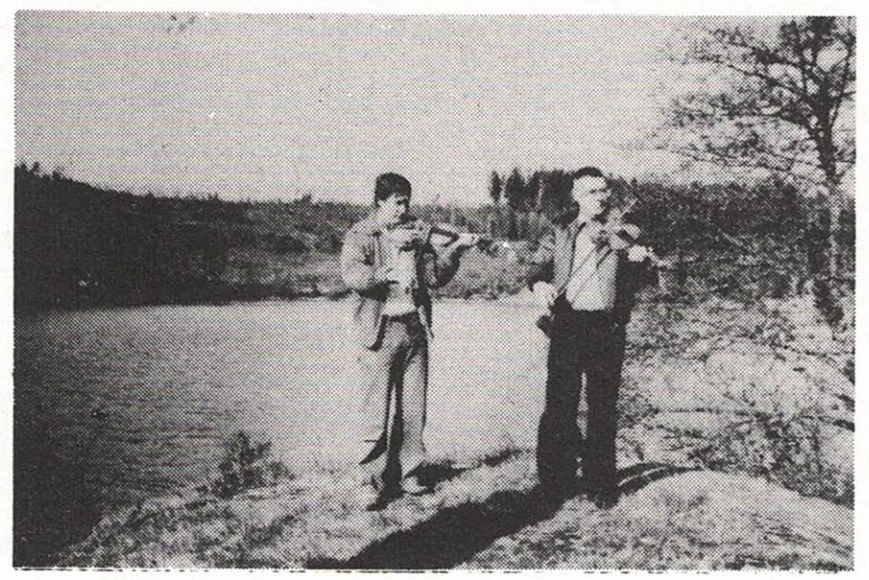 Bröderna Yngve och Ivan Carlsson, omtyckta spelmän på Kaserna. Hembygdsföreningen har många gånger haft förmånen att höra dem spela sina låtar, att nämna är vid gökotta och vid "grötlunken", ett arrangemang som livligt uppskattas på Kaserna. På bilden syns bröderna Carlsson i full aktion vid Ormnäset och sjön Vassbotten i bakgrunden .Bilden tagen av Jean Ohlsson