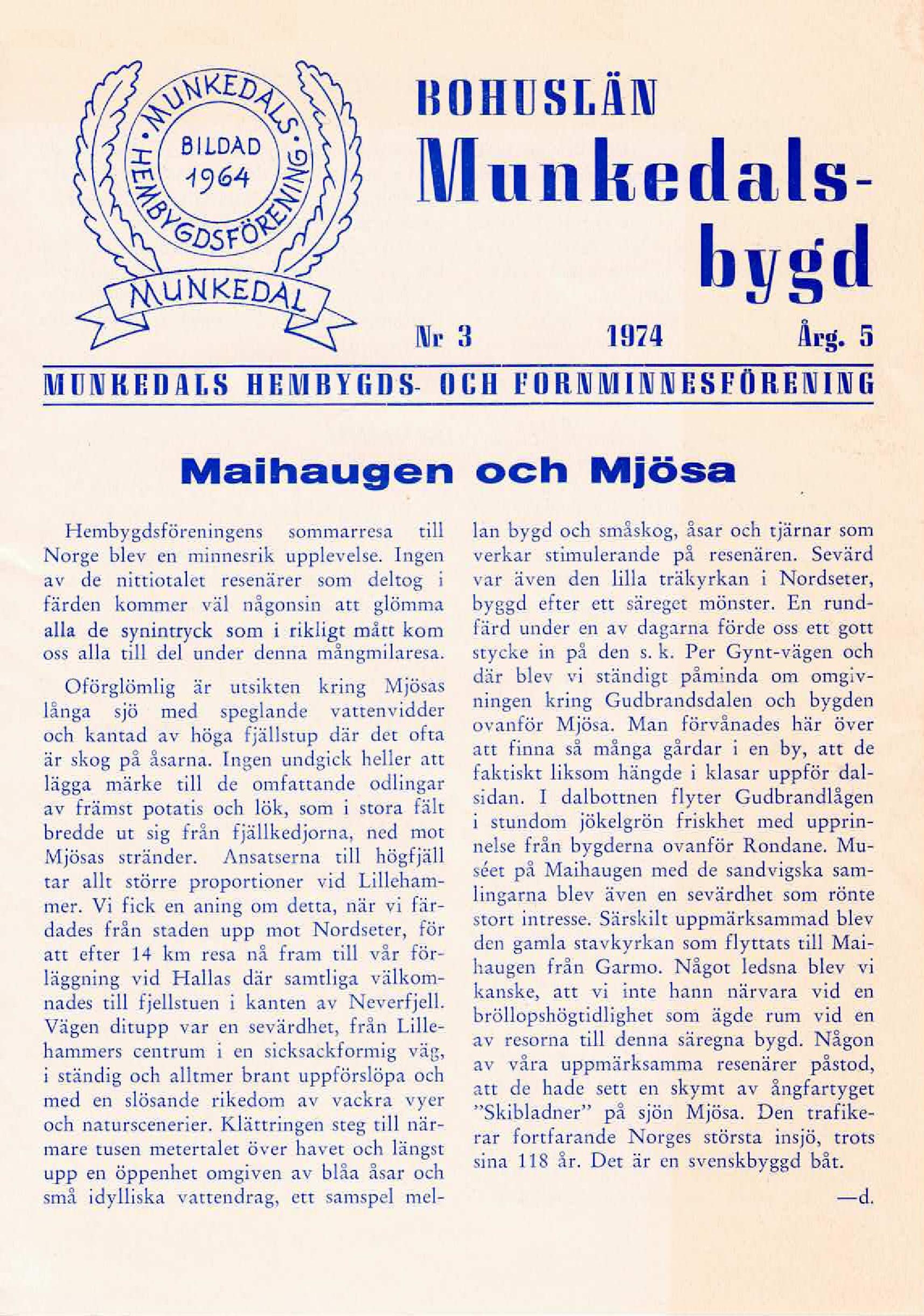 Munkedalsbygden 1974 nummer 3 utkom under 1974.