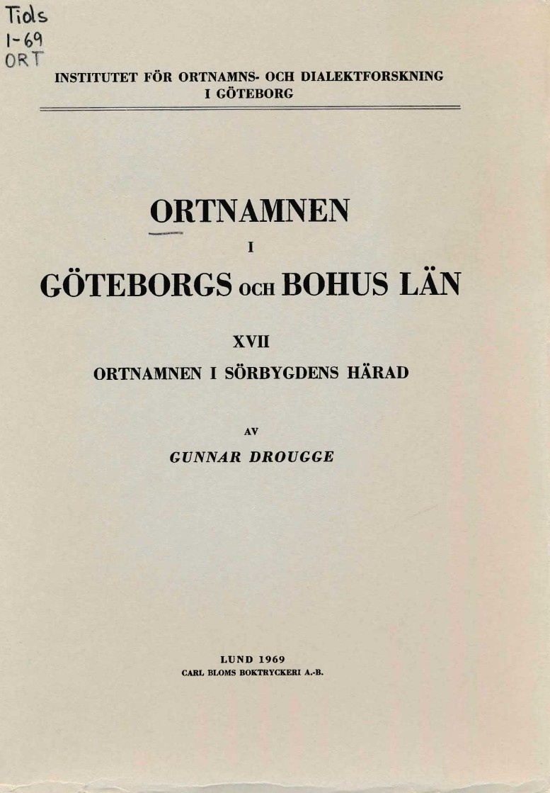 Ortnamnen i Göteborgs och Bohus län 17 - Sörbygdens härad, av Gunnar Drougge